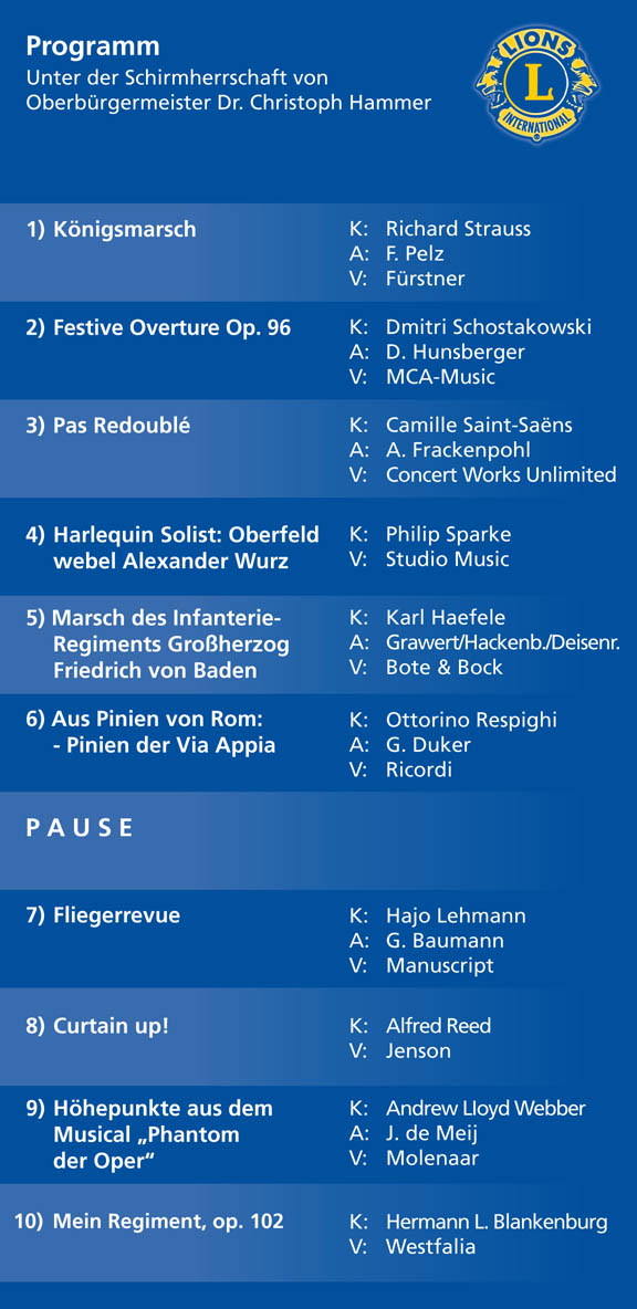 Die Musiker des Luftwaffenmusikkorps 2 aus Karlsruhe unter der Leitung von Major Martin Wehn waren am 16. November 2010 bereits zum dritten Mal unsere Gäste.