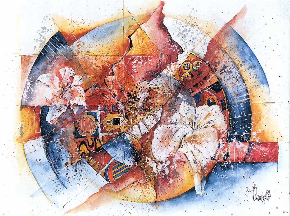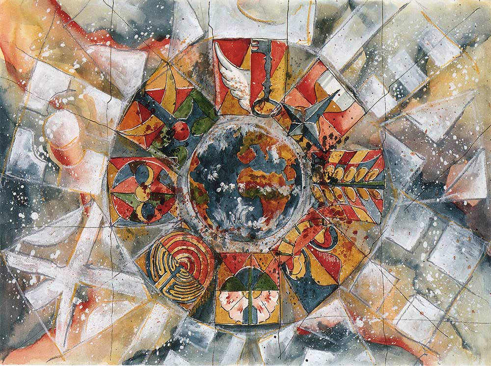 Mit Komposition III 1999 vervollständigt der Künstler seine bildnerische Aussage über die Vielschichtigkeit des menschlichen Daseins. Diese Darstellung symbolisiert den Appell an die Weltgemeinschaft, sich trotz farbig-lebendiger Vielfalt von Tradition, Kultur und Weltanschauung der übergeordneten Idee der Humanität verpflichtet zu fühlen.